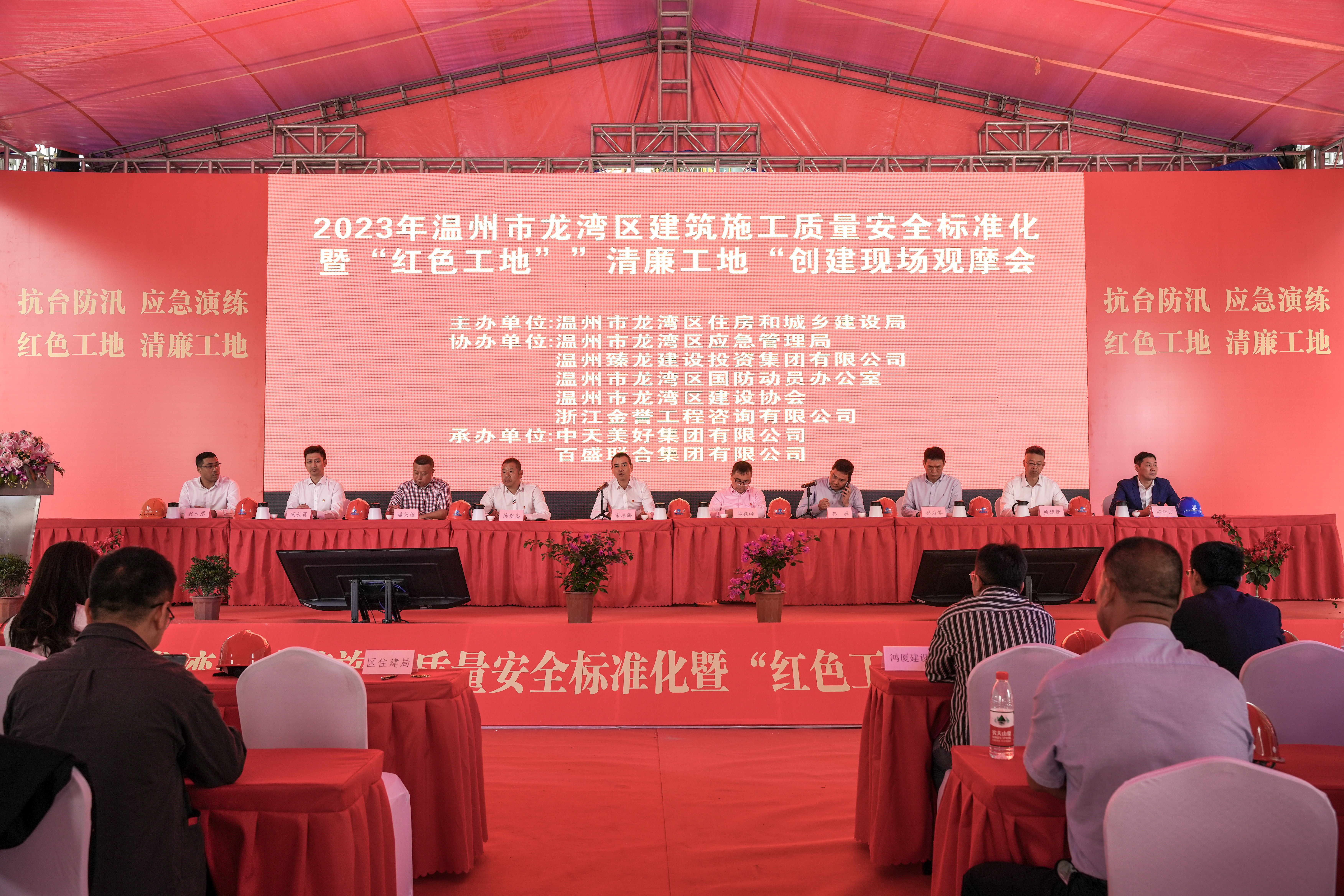 為深入貫徹落實黨的二十大精神,充分發揮黨建在工程建設活動中的引領作用,切實推動項目高質量履約,5月12日,由百盛承辦的龍灣區建筑施工質量安全標準化暨“紅色工地”“清廉工地”創建現場觀摩會在我司蒲州街道嶼田城中村改造一期工程成功舉行。來自市住建局,區住建局、應急管理局、參建單位及其他建筑企業代表400余人參加觀摩會。