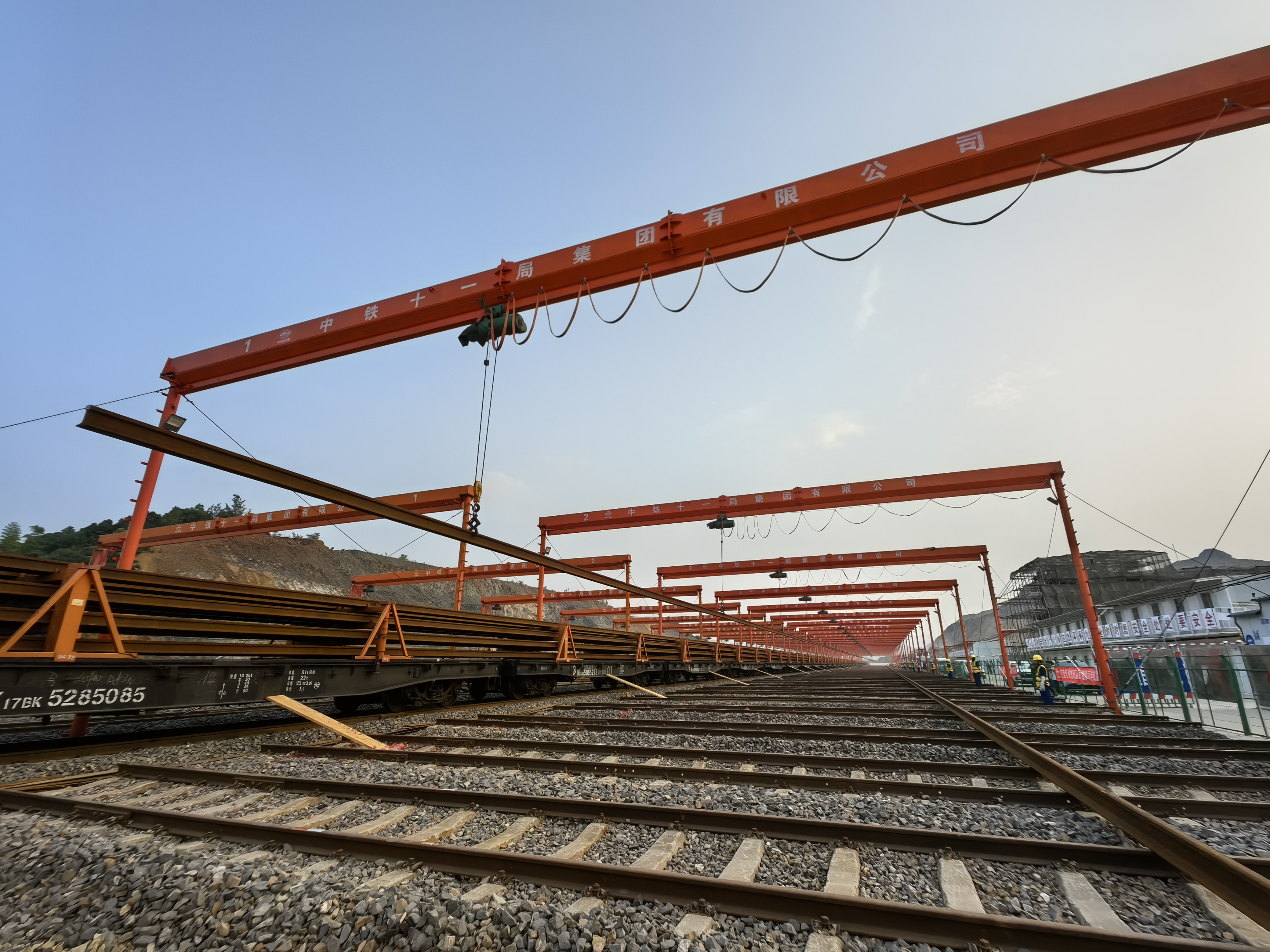 既有線長軌運輸安全風險高、協調難度大。為確保長軌順利進場,參建各方全力協同推進,統籌安排長軌裝車、發車、編組、接車、卸車、回送等作業時間,持續性做好鋪軌基地大型設備日常維護保養和調試、人員崗前安全教育培訓、長軌裝卸演練等工作,確保長軌運輸安全暢通。