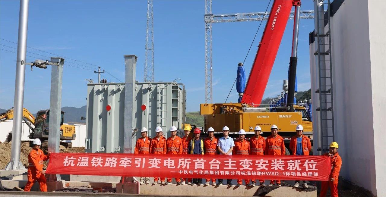 8月12日,杭溫項目鐵路首臺牽引變壓器在磐安變電所成功安裝就位,它標志著變電專業(yè)設(shè)備安裝全面進入沖刺階段,也標志著杭溫高鐵變電所建設(shè)由基礎(chǔ)建設(shè)向設(shè)備安裝穩(wěn)步推進,變電所建設(shè)進入設(shè)備安裝階段。四電專業(yè)是鐵路項目建設(shè)過程中最后一個進場的工程,變電專業(yè)設(shè)備安裝也標志了杭溫鐵路向建成通車發(fā)起了全面總攻。