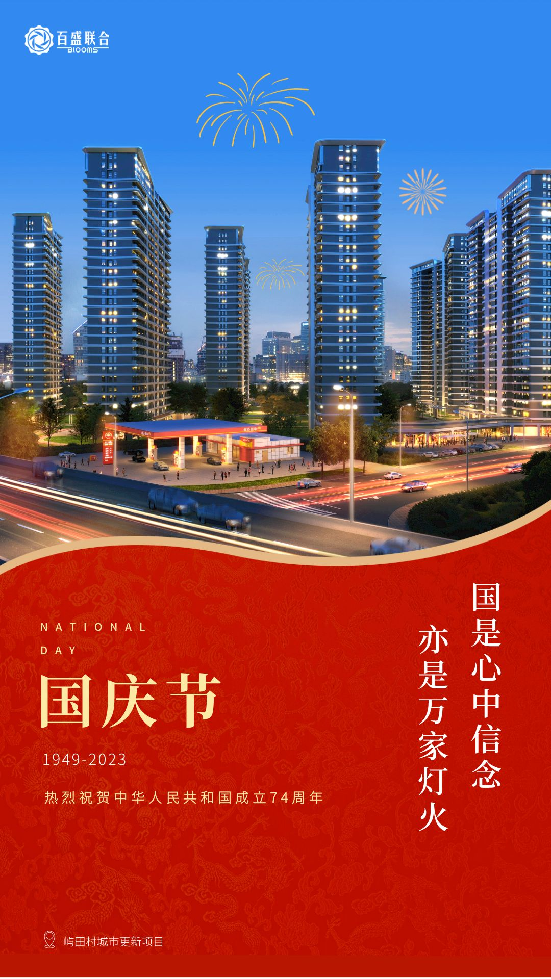 十月金秋,我們迎來了祖國74周年華誕。值此舉國歡騰之際,百盛聯合集團祝愿我們偉大的祖國永遠繁榮昌盛,民富國強!向各級領導、各界關心我們發(fā)展的朋友們致以節(jié)日的祝福和誠摯的問候!向節(jié)日期間仍堅守在施工一線的廣大職工們致敬!