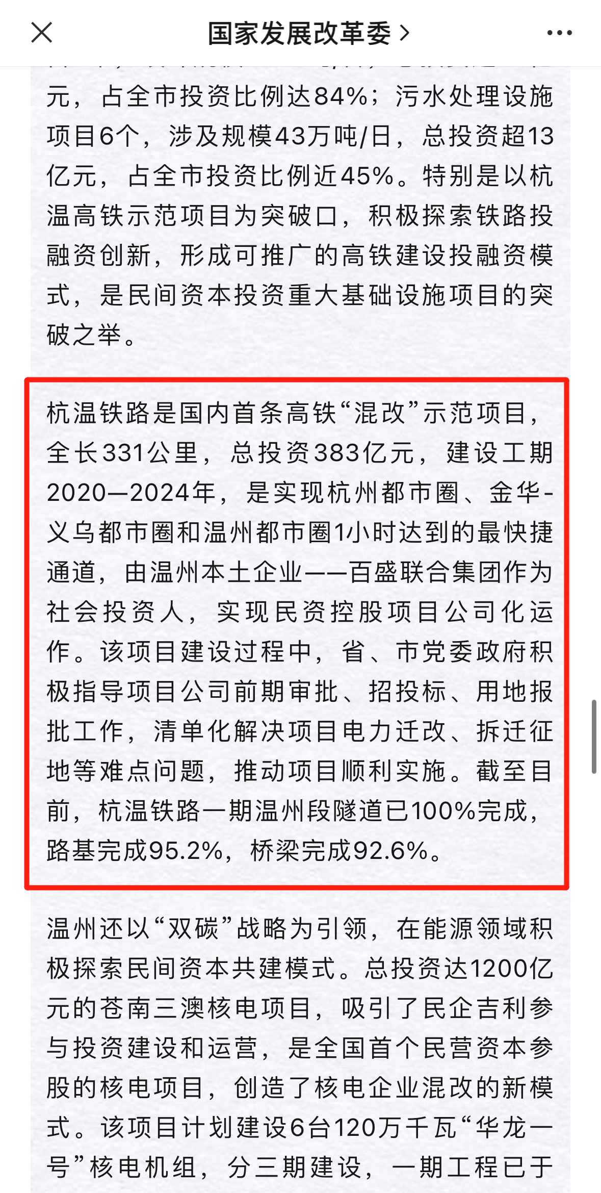 10月8日,國(guó)家發(fā)展改革委刊發(fā)《溫州市促進(jìn)民間投資工作典型經(jīng)驗(yàn)》一文,百盛聯(lián)合集團(tuán)投資建設(shè)的杭溫鐵路入選。