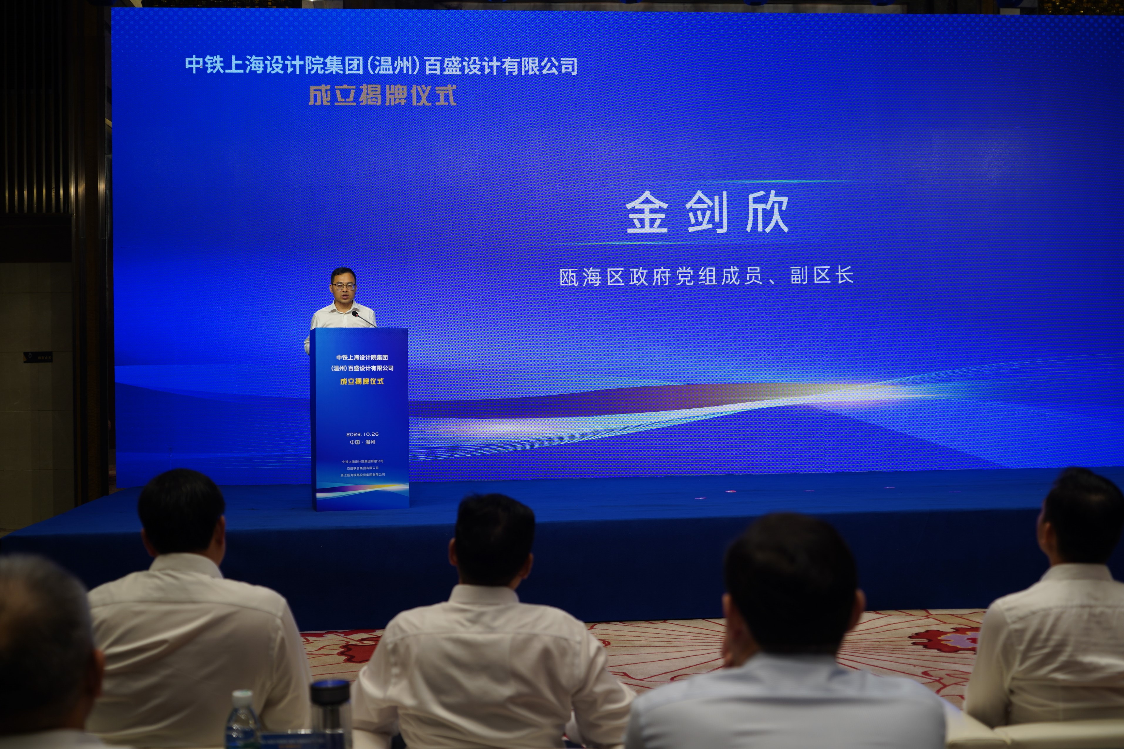 儀式現場,百盛聯合控股有限公司董事長,浙江甌海鐵路投資集團有限公司總經理黃敏祖,中鐵上海設計院集團有限公司黨委副書記、院長陳樹堂,甌海區政府黨組成員、副區長金劍欣先后上臺發言。各方對新公司成立表示熱烈祝賀,對合作前景寄予厚望。