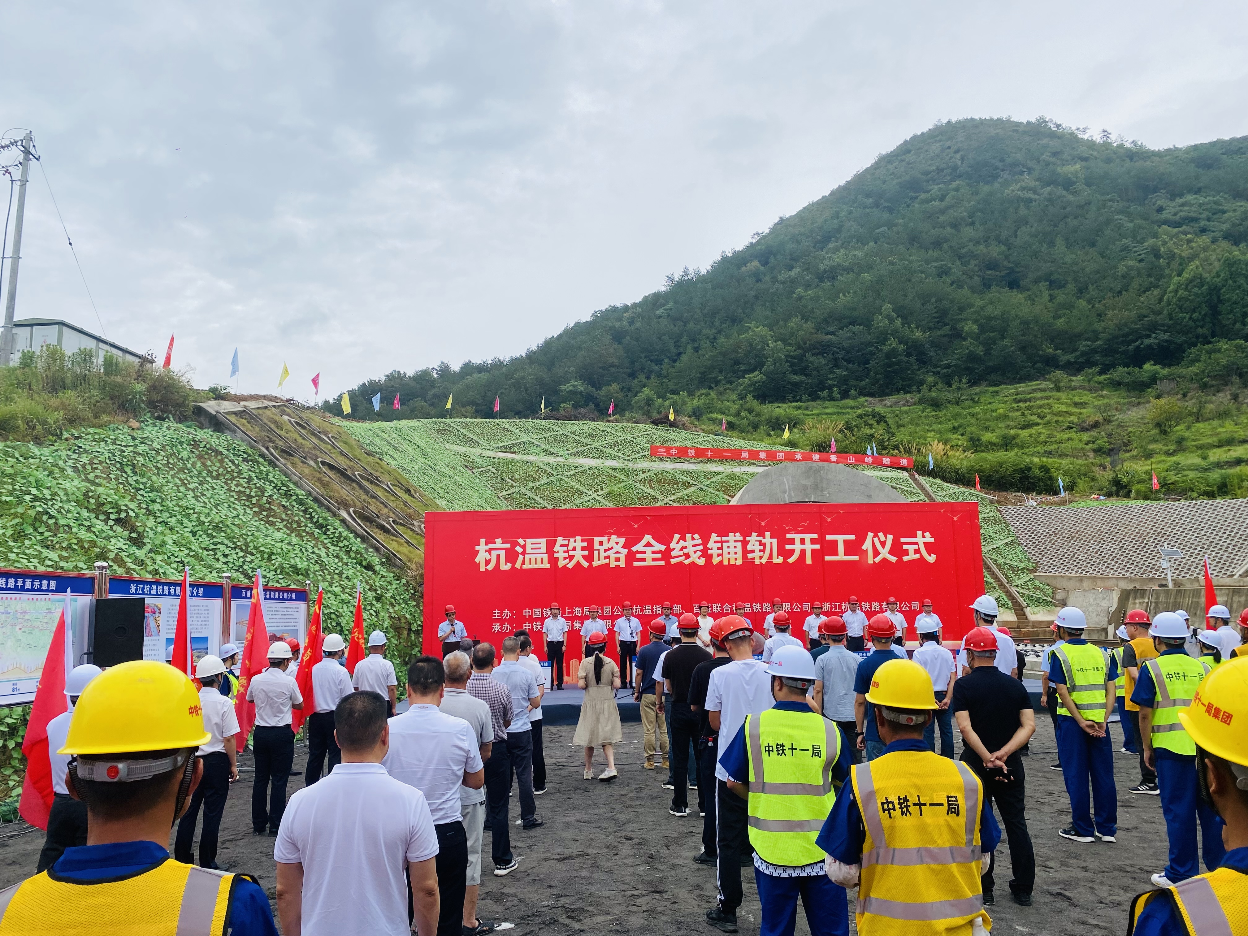 7月20日10時,在杭溫鐵路香山嶺隧道出口施工現場,隨著一對500米長鋼軌平穩地鋪設在無砟軌道板上,國內首條“雙示范”民營控股高鐵——杭溫鐵路開始全線鋪軌。