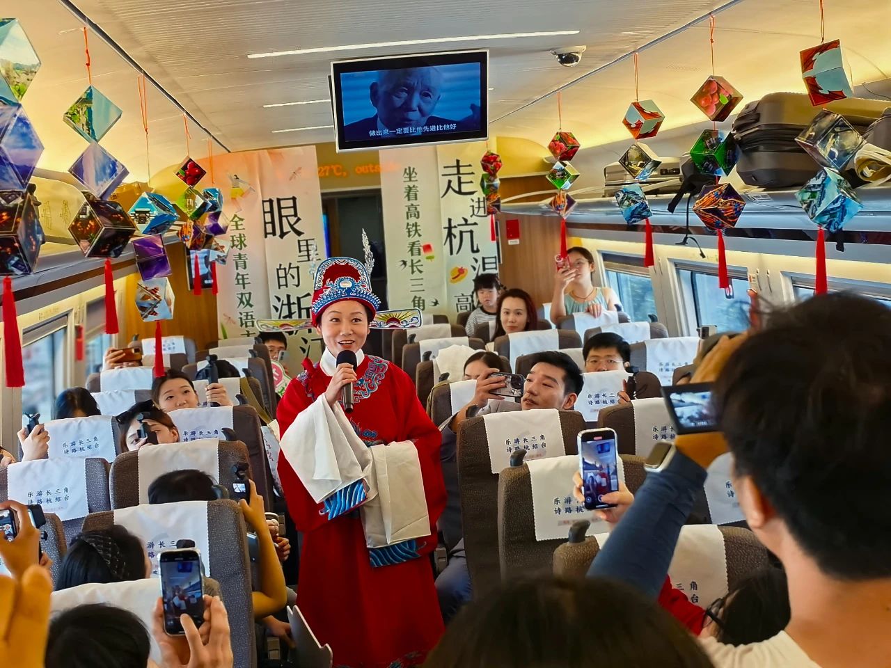 活動當天,全球青年雙語主播及媒體記者還在溫州北站,登上G7420次列車,乘坐百盛投資建設運營的杭溫高鐵前往橫店。